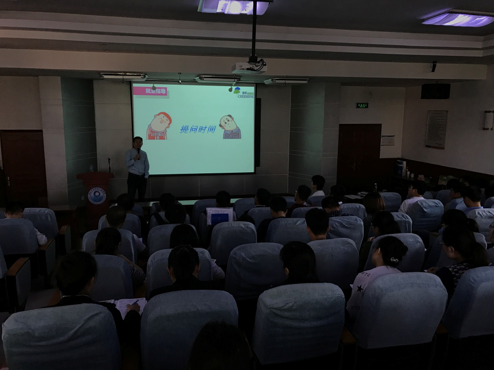 上圖為上海麒祥總經(jīng)理尹興昌給青科大同學(xué)做就業(yè)指導(dǎo)