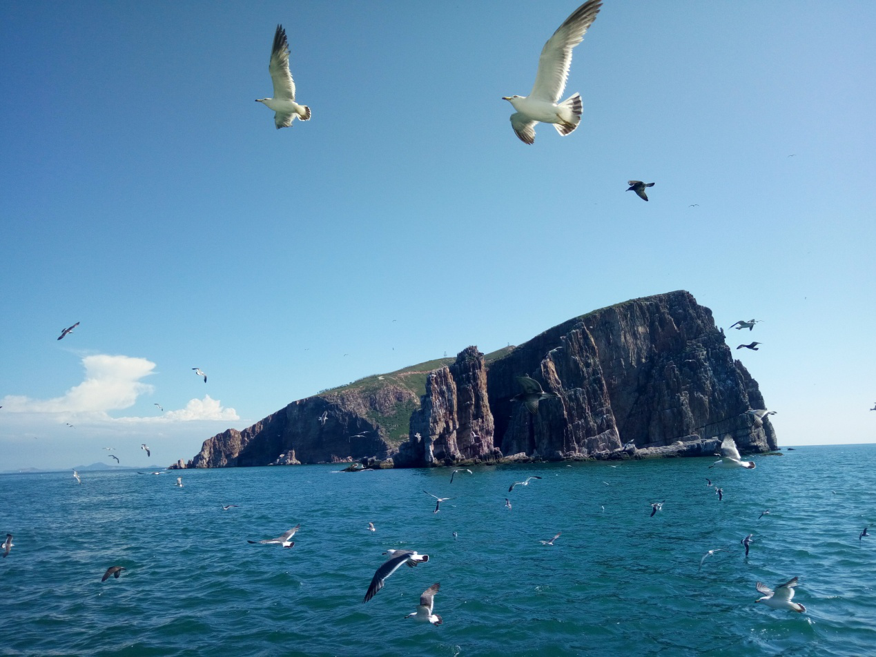 在這里,成百上千只海鷗群飛、嬉戲的壯觀畫面,著實令人賞心悅目、興致盎然。當(dāng)海浪拍打礁石的聲音和海鷗的叫聲交織在一起,當(dāng)雙眼注視著海鷗盡情地在崖壁上空飛翔的時候,你的心,也隨著海鷗飛翔起來。