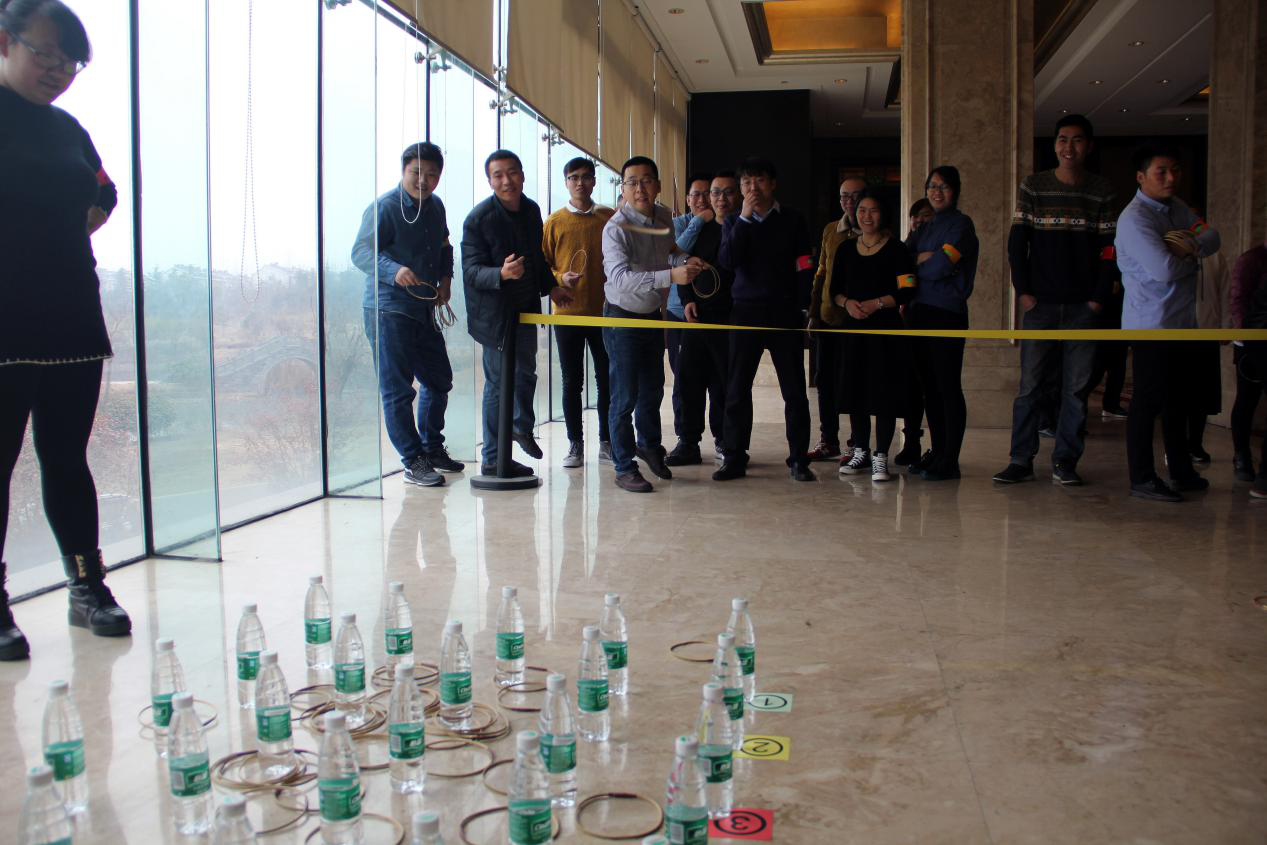 接下來是輕松的團隊競技,活動分為套圈、五人六足和摜蛋比賽三項,累計得分前三的獲得團隊獎勵。由副總經(jīng)理王建帶領(lǐng)的紅隊獲得團隊冠軍,由副總經(jīng)理房建明帶領(lǐng)的粉隊獲得亞軍,由高管尹興昌帶領(lǐng)的藍隊獲得季軍。