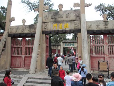 首先我們?nèi)チ丝讖R,在中國,孔廟有很多,但歷史等級應(yīng)屬位于山東曲阜市南門內(nèi)的第一座孔廟,它又稱圣廟,與北京故宮、承德避暑山莊并稱東方三大古建筑群。我們沿著護(hù)城河慢慢向前走, 看著這些古老威嚴(yán)的建筑,驚嘆古人的偉大和智慧。