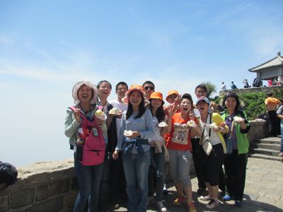5月19日早晨我們驅(qū)車赴泰山。早上我們徒步上山,途游云步橋、五大夫松、朝陽洞、迎客松、經(jīng)十八盤、至南天門、天街、望吳勝跡、青帝宮、拱北石,路上風(fēng)光無限,我們跟隨著帝王,名人的足跡留下那些美麗的風(fēng)景和各種風(fēng)格的名人書法,開闊了眼界。走進(jìn)泰山,就是走進(jìn)歷史。從泰城西南祭地的社首山、蒿里山至告天的玉皇頂,數(shù)不勝數(shù)的名勝古跡、摩崖碑碣遍布山中。下午我們游覽的是岱廟,岱廟又稱東岳廟或泰山廟. 是泰山完整的古建筑群,為道教神府,是歷代帝 王舉行封禪大典和祭祀泰山神的地方。到達(dá)山的終點----玉皇頂,體驗會當(dāng)凌絕頂、一覽眾山小的豪情。