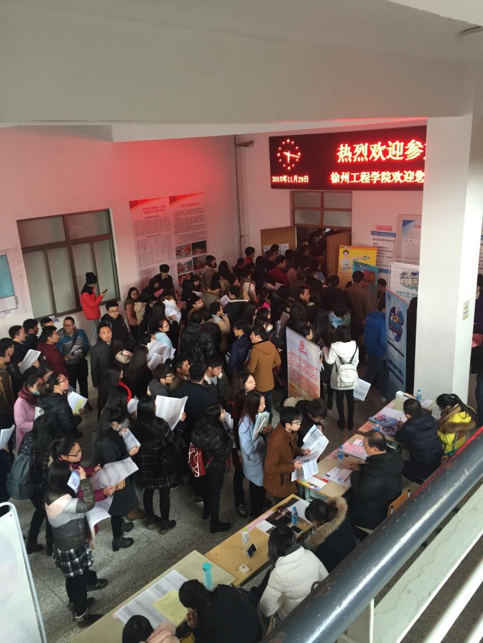 2015年11月29日,麒祥來到美麗的徐州,參加徐州工程學院2016屆畢業(yè)生就業(yè)雙選會。此次參會企業(yè)眾多,招聘現(xiàn)場人頭攢動。雖然天氣寒冷,但是仍不減同學們的熱情。
