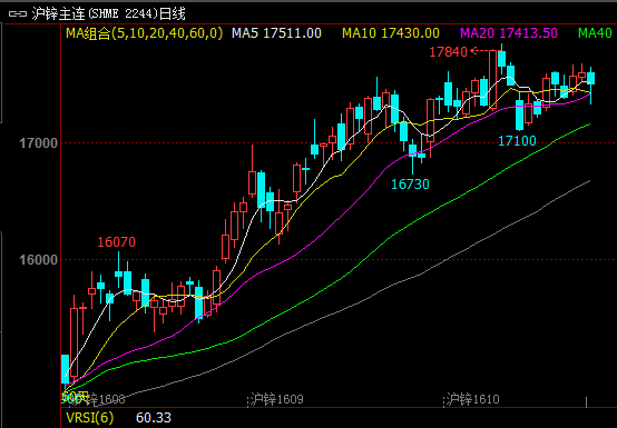 滬鋅走勢(shì)相對(duì)倫鋅表現(xiàn)抗跌,盤(pán)中最高價(jià)在17670元/噸,最低價(jià)在17330元/噸,整體較上周下跌35元/噸,跌幅0.20%。滬鋅周內(nèi)震蕩區(qū)間鎖定在17500元/噸整數(shù)一線附近,均線系統(tǒng)支持力度較強(qiáng),但17500元/噸整數(shù)一線上方仍難以站穩(wěn)。由小時(shí)線來(lái)看,滬鋅正受布林通道中軌線壓迫,上沖動(dòng)力不足。短期對(duì)滬鋅的走勢(shì),仍建議觀望為主,短空思路操作下,應(yīng)注意止損位的設(shè)置。目前滬鋅前行形態(tài)仍難以確定,關(guān)注17300-17800元/噸,下周預(yù)計(jì)維持弱勢(shì)調(diào)整思路。