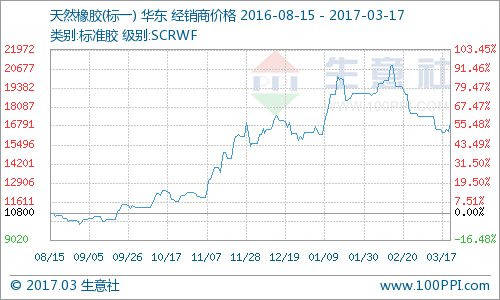 據生意社價格監(jiān)測本周天然橡膠價格走勢下滑,本周初天膠價格為16350元/噸,周末價格為16970元/噸,價格下滑3.77%。